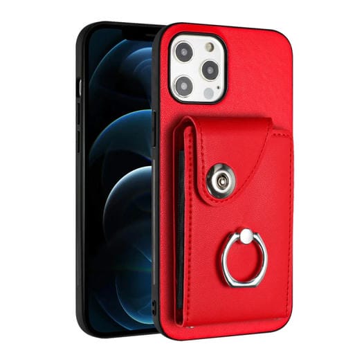 Funda para Teléfono iPhone 12 Pro con Soporte para Anillo y Bolsa para Tarjeta (Rojo)