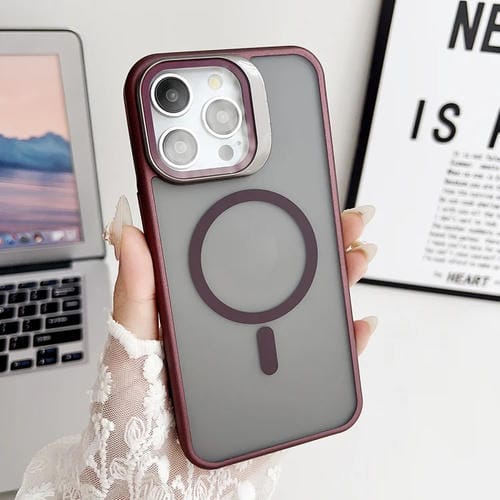 Funda para Teléfono iPhone 12 Pro J3 Magsafe Frame Bracket a Prueba de Golpes (Rojo Vino)