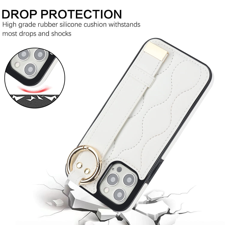 Funda para Teléfono iPhone 12 Pro Max Antideslizante Cobertura Completa Anillo PU con Muñequera (Blanco)