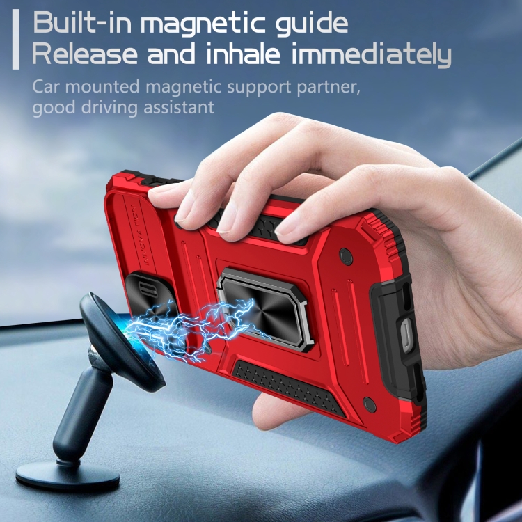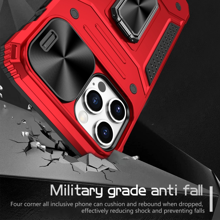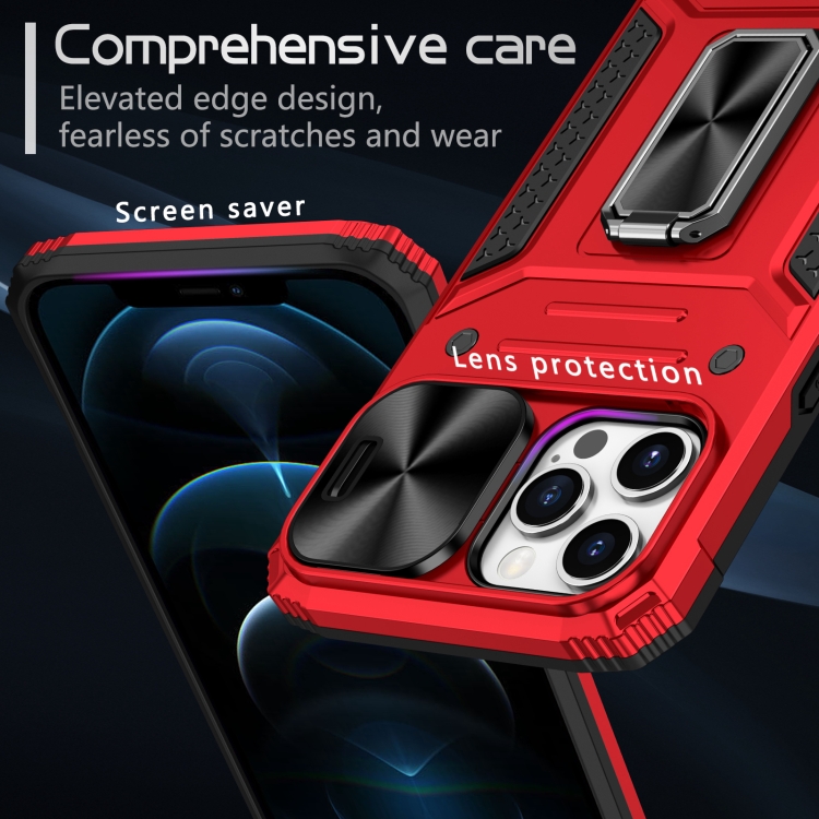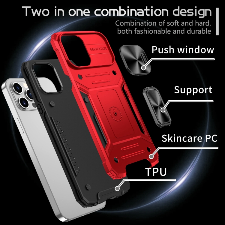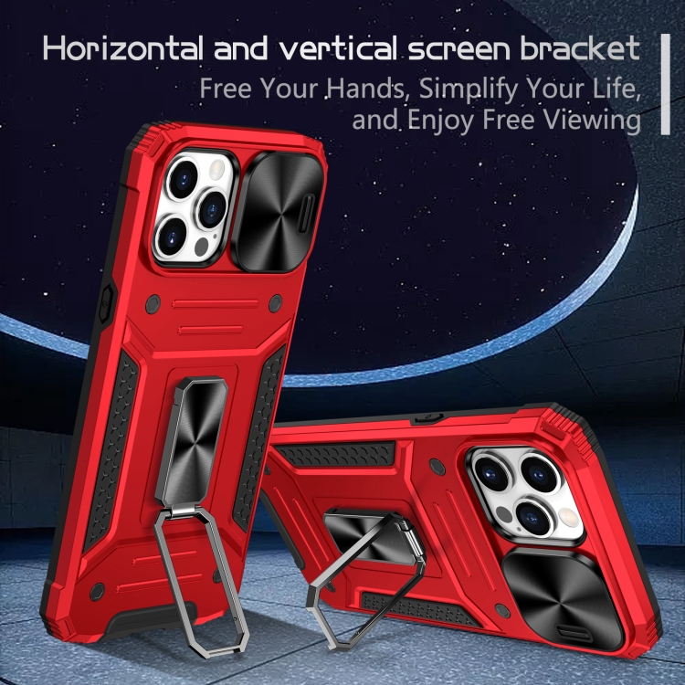 Funda para iPhone 12 Pro Max Camshield Robot TPU Hybrid PC Phone Case (Rojo)