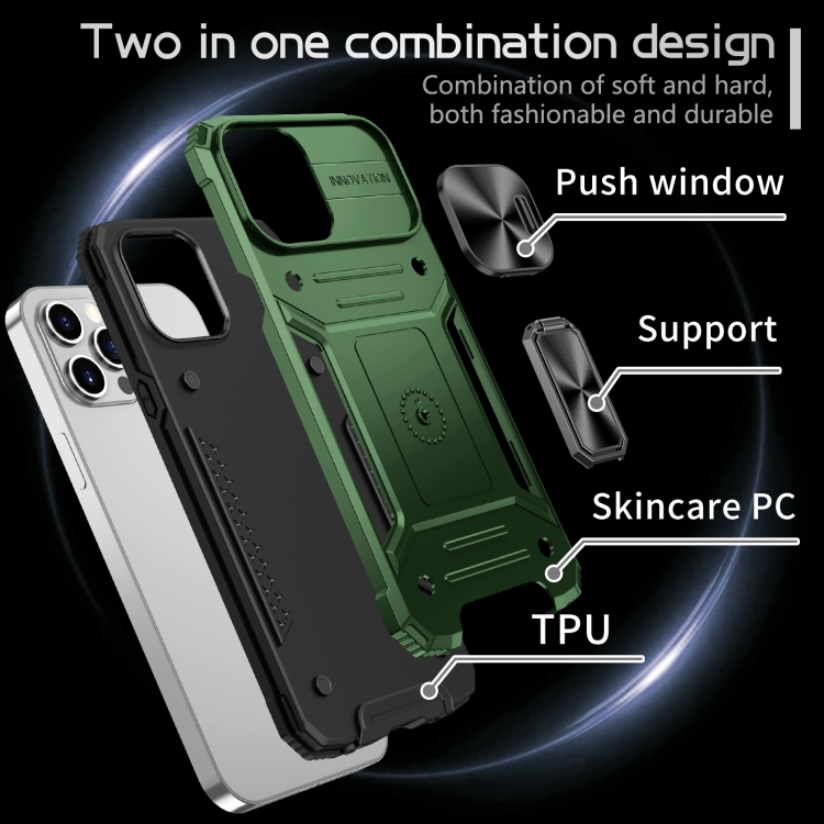 Funda para iPhone 12 Pro Max Camshield Robot TPU Hybrid PC Phone Case (Verde)