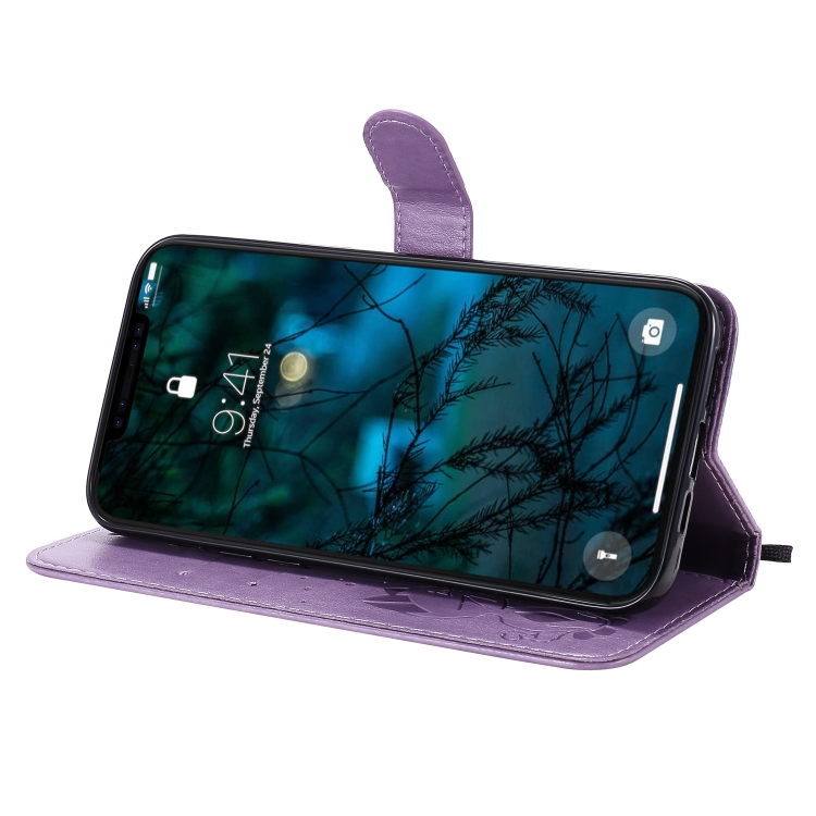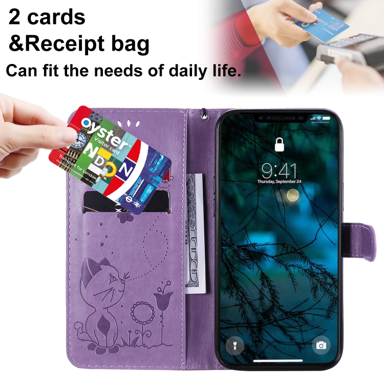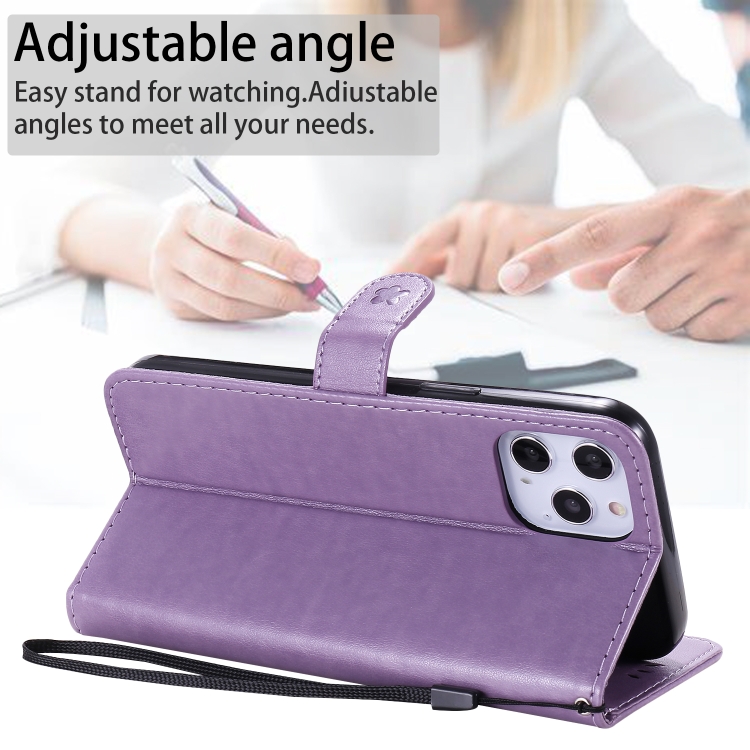 Funda de Cuero Cat Bee para iPhone 12 Pro Max con Tapa Horizontal, Soporte y Ranuras para Tarjetas (Púrpura)