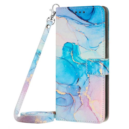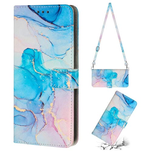 Funda de Teléfono iPhone 12 Pro Max Crossbody Cuero Patrón Mármol Pintado (Rosa Verde)