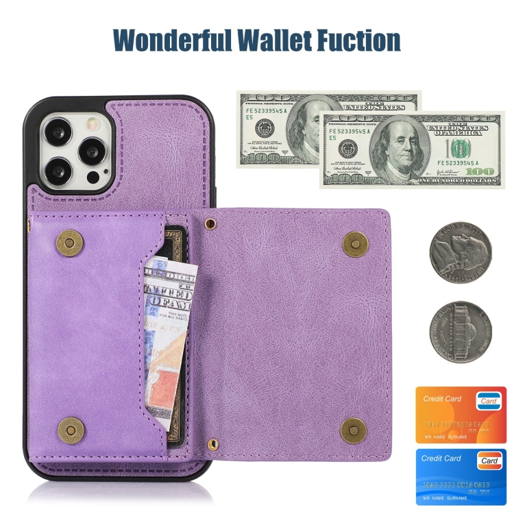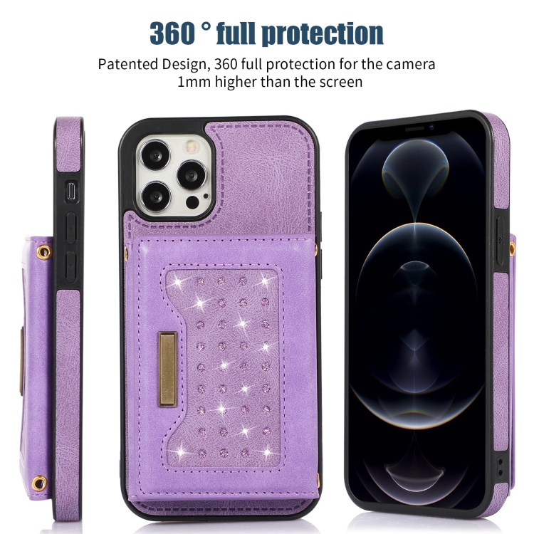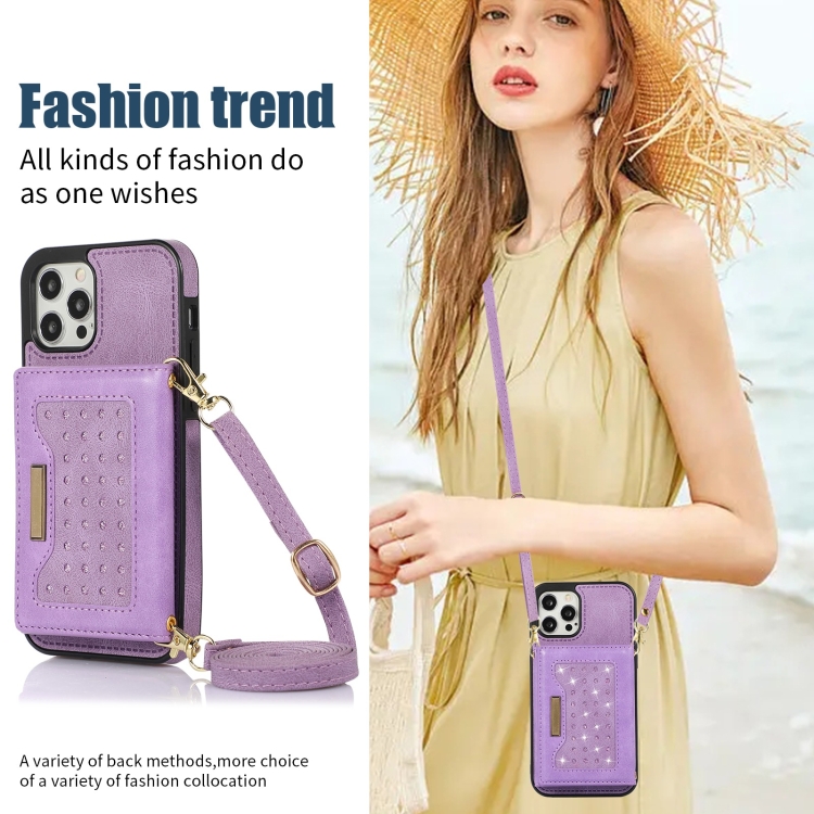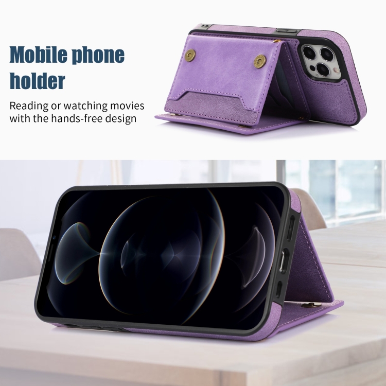 Estuche de Teléfono Cuero Rfid Tres Pliegues con Cordón para iPhone 12 Pro Max (Púrpura)