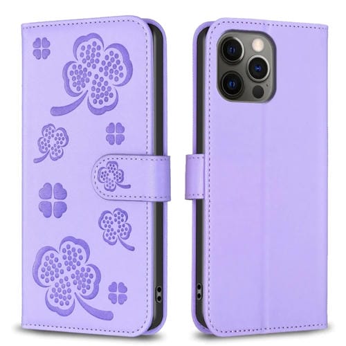 Funda para Teléfono Apple iPhone 12 Pro Max Cuero con Relieve de Cuatro Hojas (Púrpura)