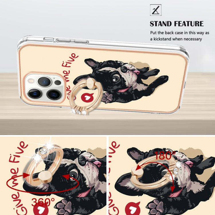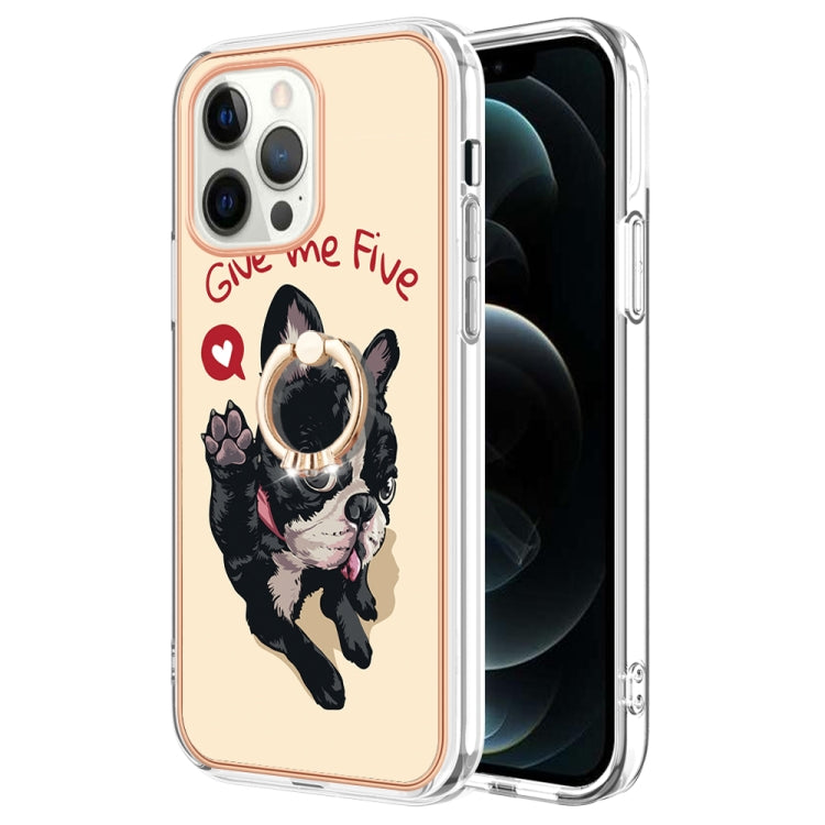 Funda para iPhone 12 Pro Max Galvanoplastia Imd Doble Cara con Soporte para Anillo (Perro de la Suerte)