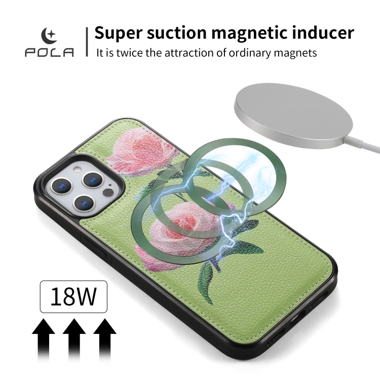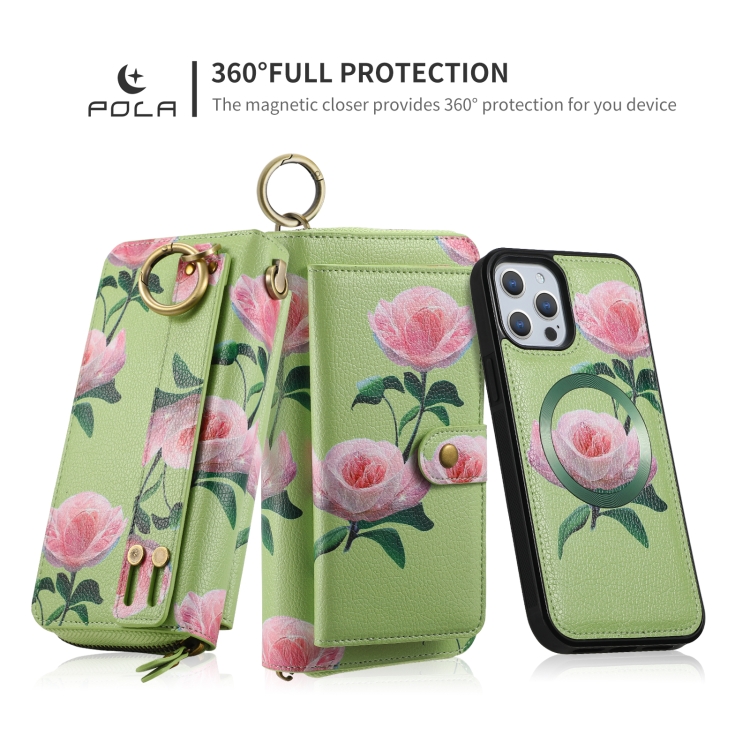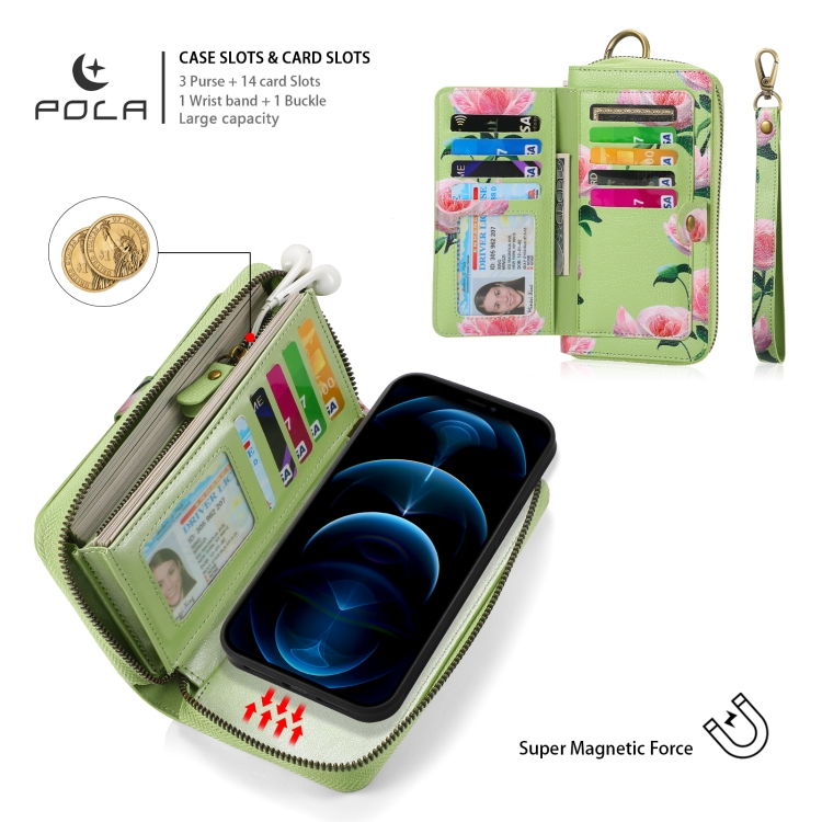 Funda de Cuero Pola Magsafe para iPhone 12 Pro Max con Billetera y Cremallera Multifuncional (Verde)