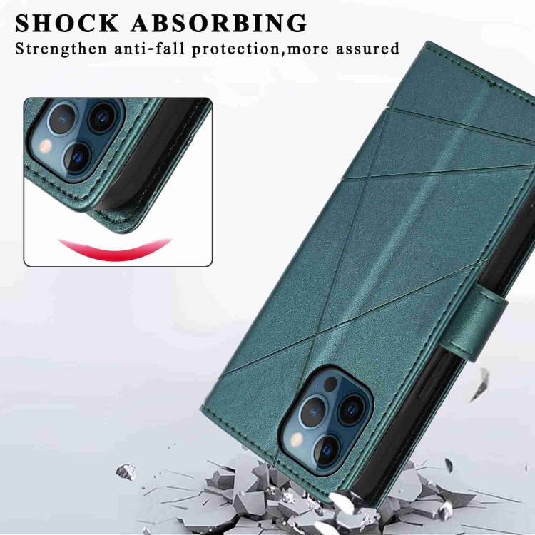 Funda para Teléfono iPhone 12 Pro Max PU con Línea en Relieve Textura Cuero Genuino (Verde)