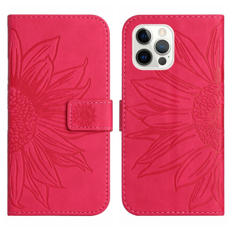 Funda Flip de Cuero para iPhone 12 Pro Max Skin Feel Sun Flower Pattern con Cordón (Rose Red)