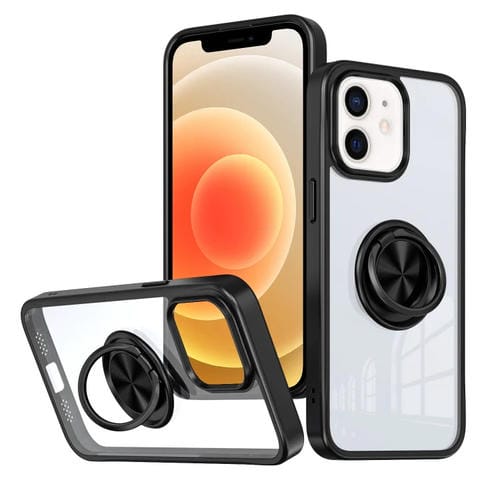 Funda para Teléfono iPhone 12 Ring Holder PC Hybrid TPU (Negro)