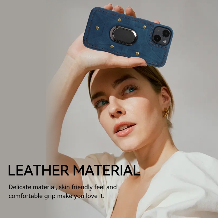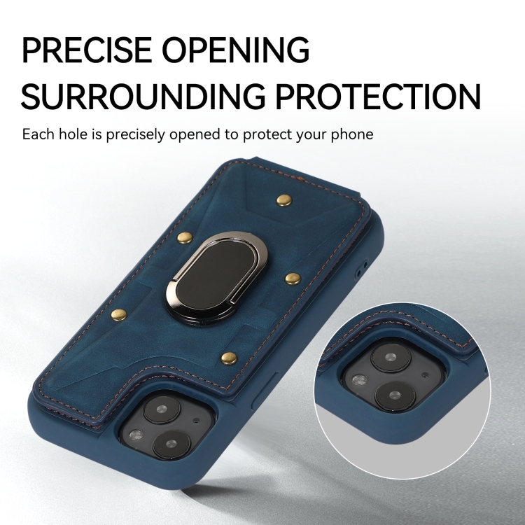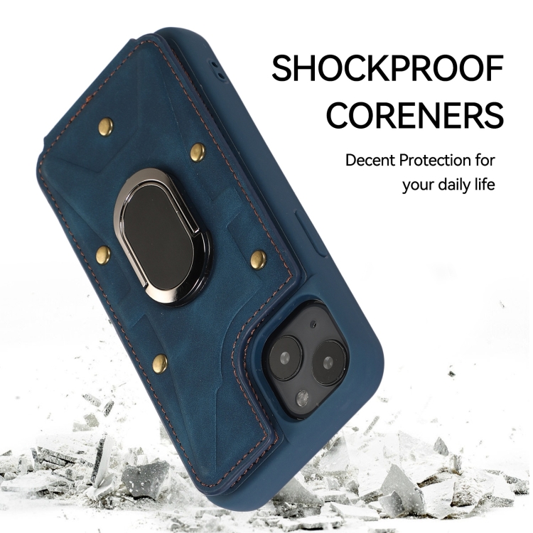 Funda para iPhone 13 Armor Ring Wallet Back Cover (Azul)