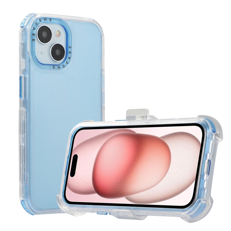 Estuche para Teléfono iPhone 13 Frosted PC + TPU con Clip Trasero (Azul Cielo)