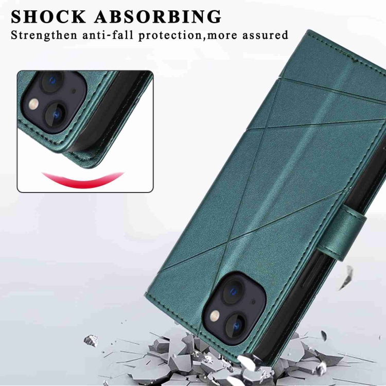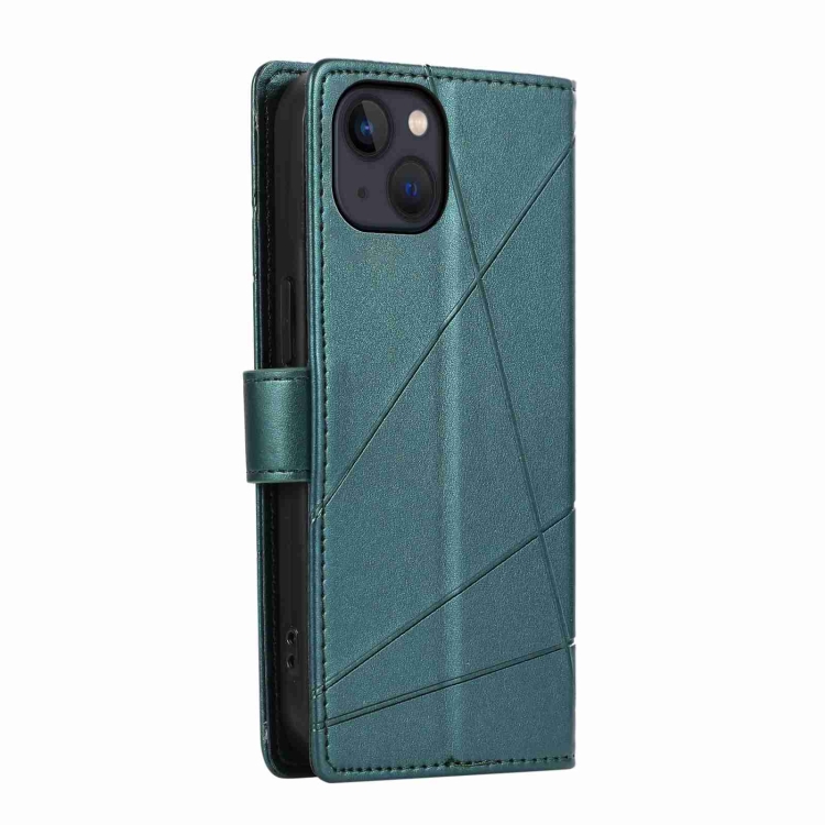 Funda para Teléfono iPhone 13 con Línea en Relieve Textura Cuero Genuino Pu (Verde)