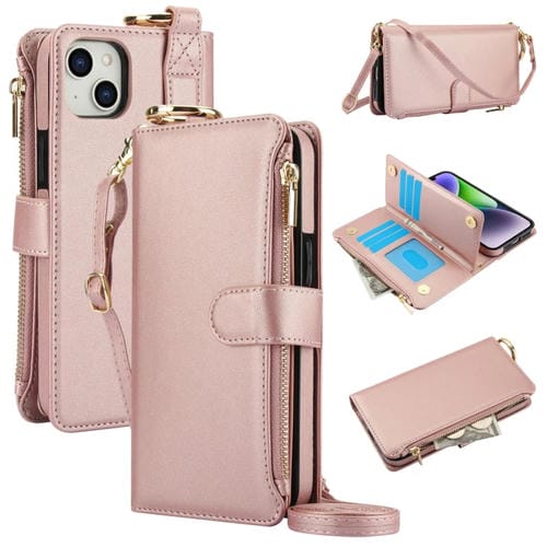 Funda para Teléfono iPhone 13 Cuero Billetera Multifuncional Anillo Cruzado (Oro Rosa)
