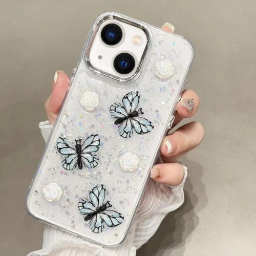 Funda para Teléfono iPhone 13 TPU Glitter 3D Butterfly (Azul)