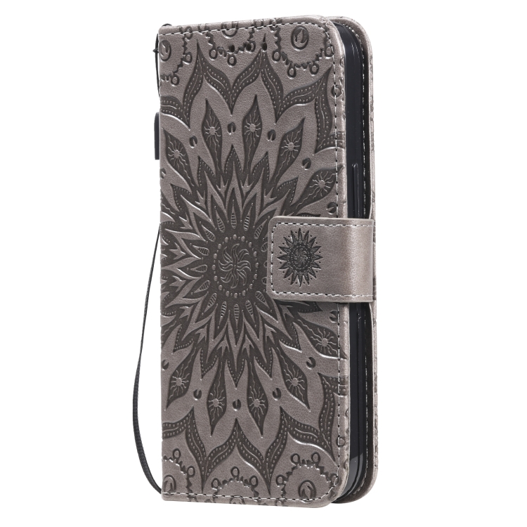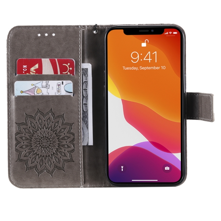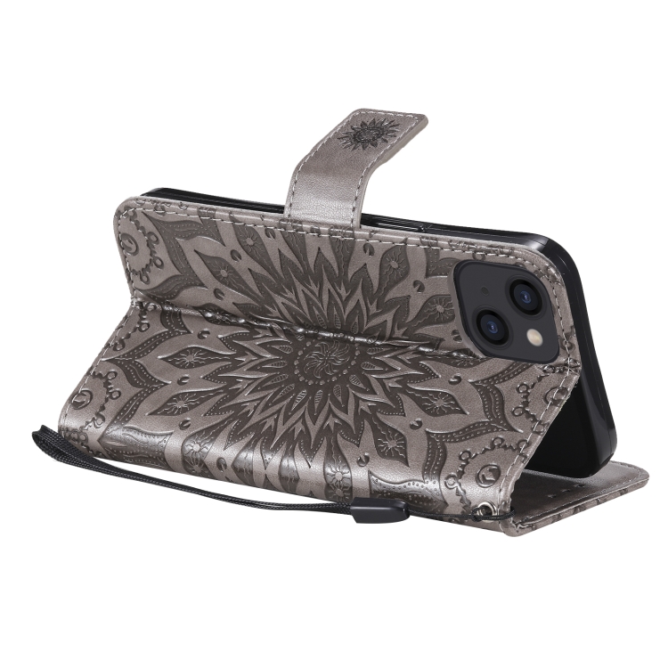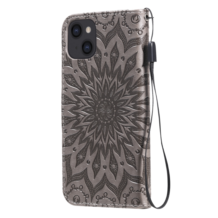 Funda para iPhone 13 Cuero PU Flip Horizontal Patrón Girasol Ranuras Tarjetas Billetera Cordón (Gris)