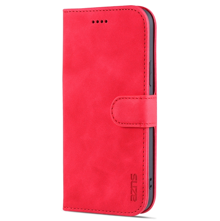 Funda de Cuero Azns Skin Feel Calf Texture para iPhone 13 Mini con Tapa Horizontal, Ranuras para Tarjetas, Soporte y Billetera (Rojo)