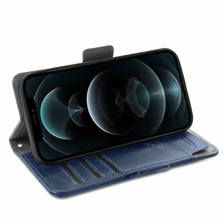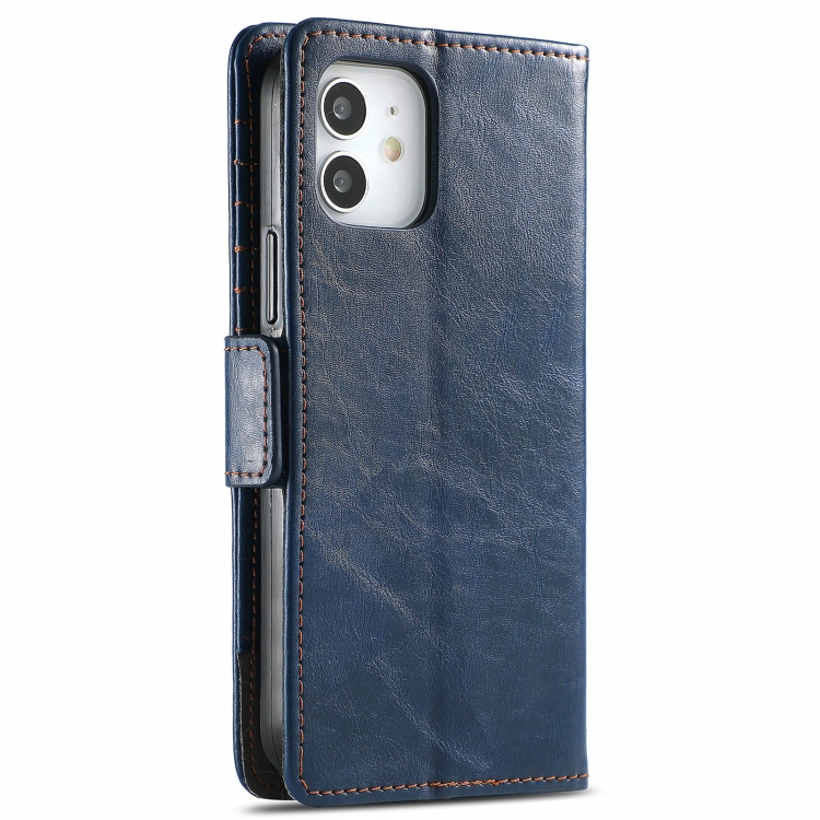 Funda para iPhone 13 Mini Caseneo Business Splicing Dual Magnetic Buckle Horizontal Flip PU Cuero con Soporte y Ranuras para Tarjetas (Azul)