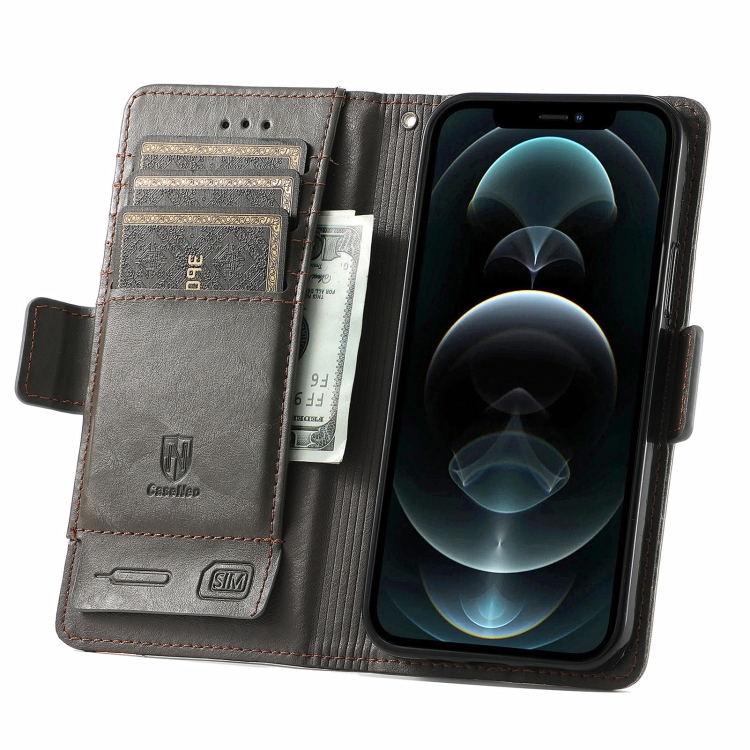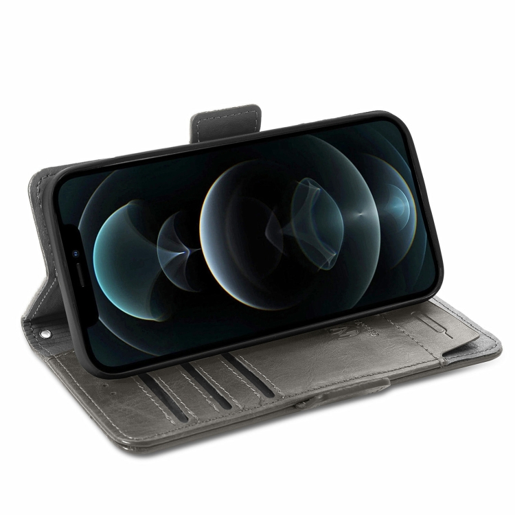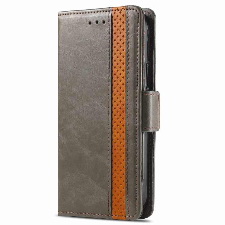 Funda para iPhone 13 Mini Caseneo Business Splicing Dual Magnetic Buckle Horizontal Flip PU Cuero con Soporte y Ranuras para Tarjetas y Billetera (Gris)