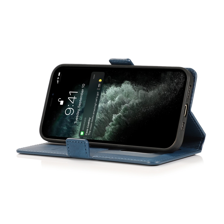 Estuche de Cuero para iPhone 13 Mini Cierre Magnético Tapa Horizontal Soporte Ranuras Tarjetas Marco Fotos Billetera (Azul Marino)