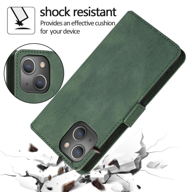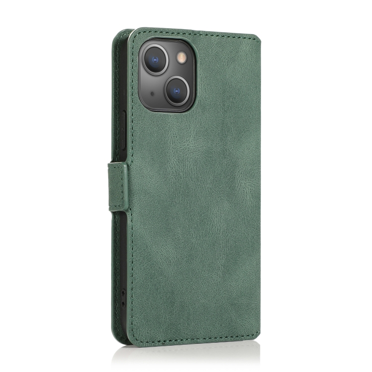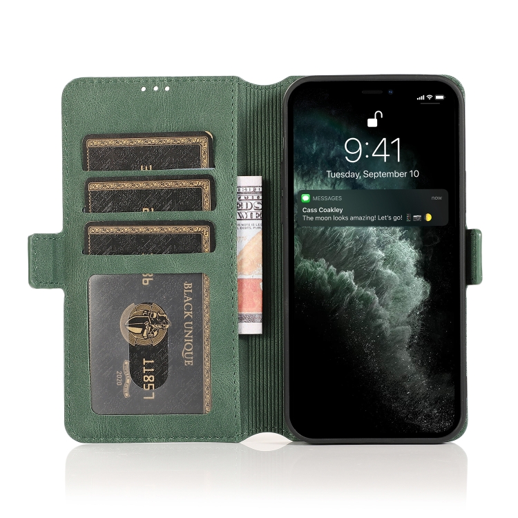 Estuche de Cuero para iPhone 13 Mini Cierre Magnético Tapa Horizontal Soporte Ranuras Tarjetas Marco Fotos Billetera (Verde)
