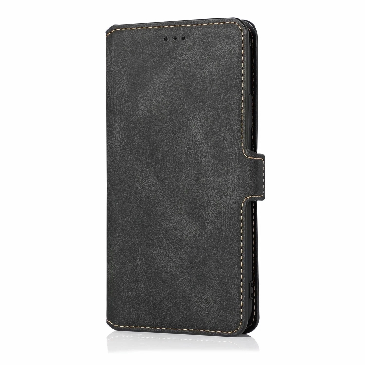 Estuche de Cuero para iPhone 13 Mini con Cierre Magnético Tapa Horizontal Soporte Ranuras Tarjetas Marco Fotos Billetera (Negro)