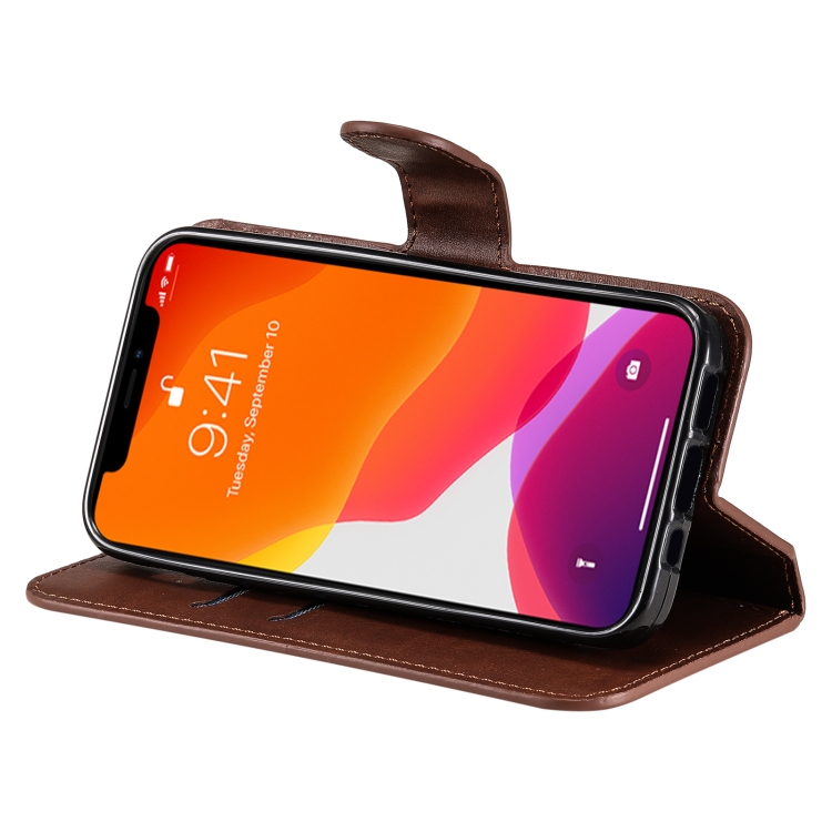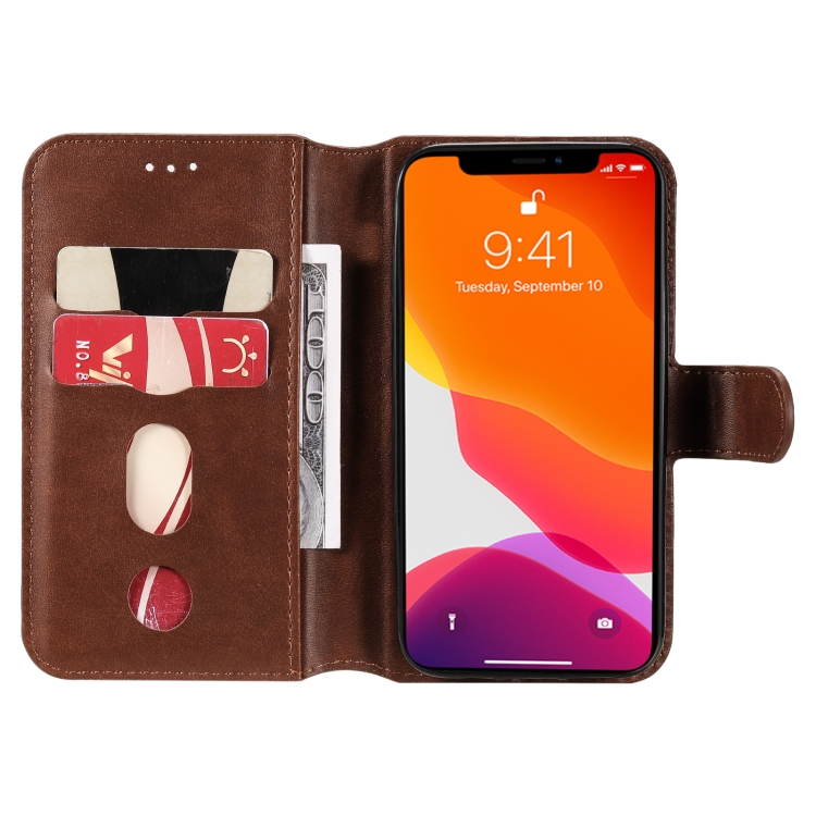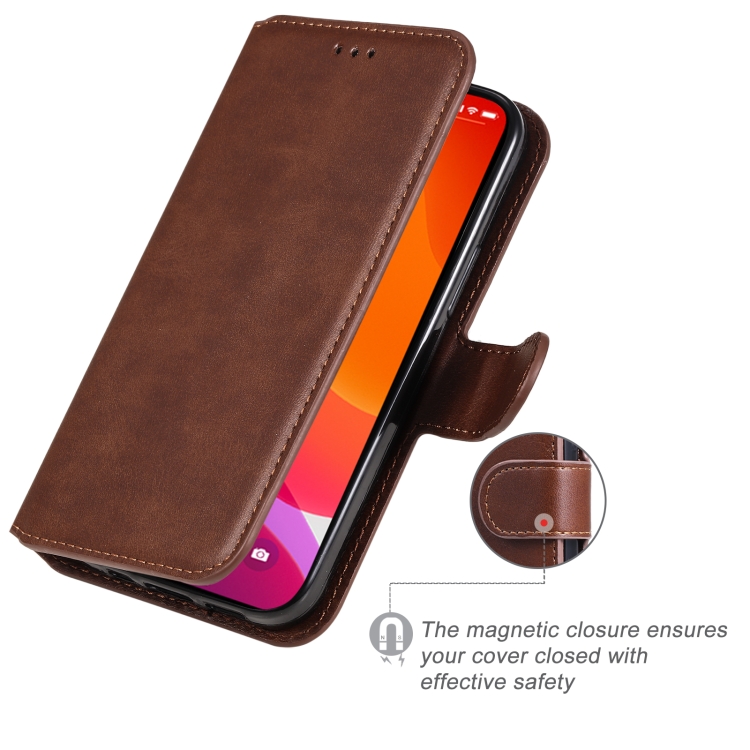 Funda para iPhone 13 Mini Classic Calf Texture PU + TPU con Tapa Horizontal, Soporte y Ranuras para Tarjetas (Marrón)