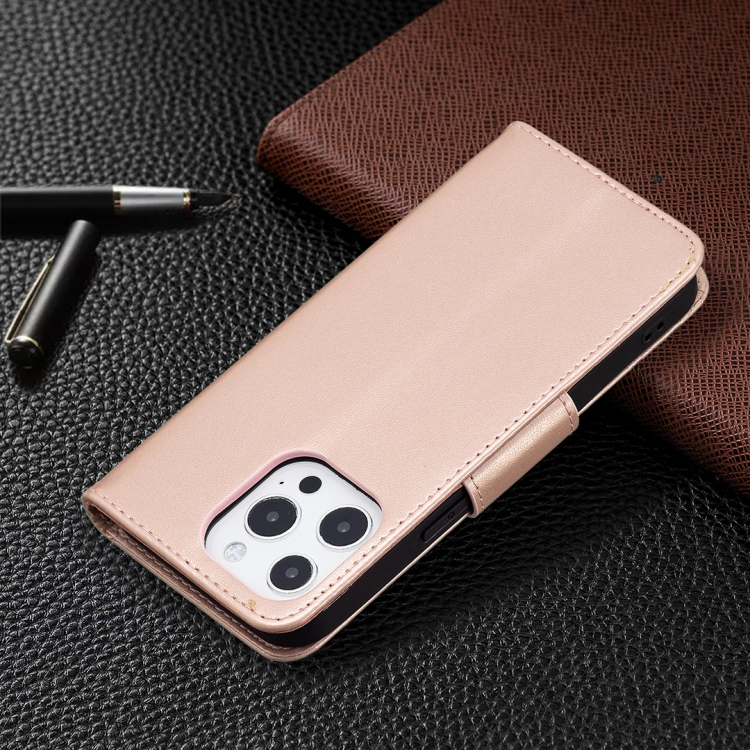 Funda para iPhone 13 Mini Cuero PU Estampado Mariposas Tapa Horizontal Soporte Ranura Tarjeta Billetera Cordón (Oro Rosa)