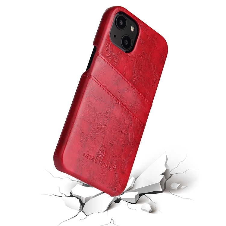 Funda para iPhone 13 Mini Fierre Shann Retro Oil Wax Texture PU Cuero con Ranuras para Tarjetas (Rojo)