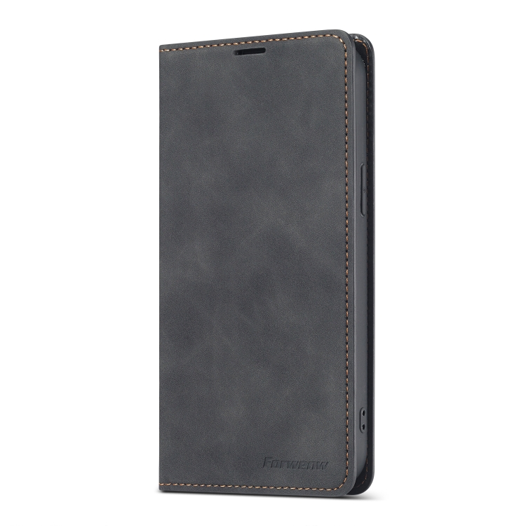 Estuche de Cuero FoRWenw Dream Series para iPhone 13 Mini con Tapa Horizontal, Borde de Aceite Magnético, Soporte, Ranura para Tarjeta y Billetera (Negro)
