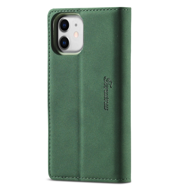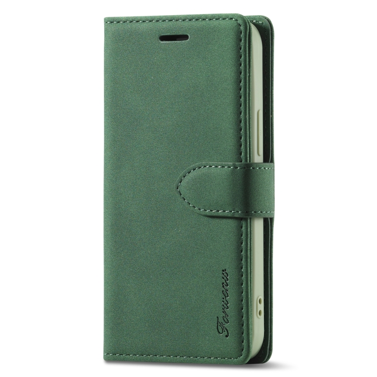 Estuche de Cuero FoRWenw F1 Series para iPhone 13 Mini con Tapa Horizontal Magnética Mate Soporte Ranuras y Billetera (Verde)