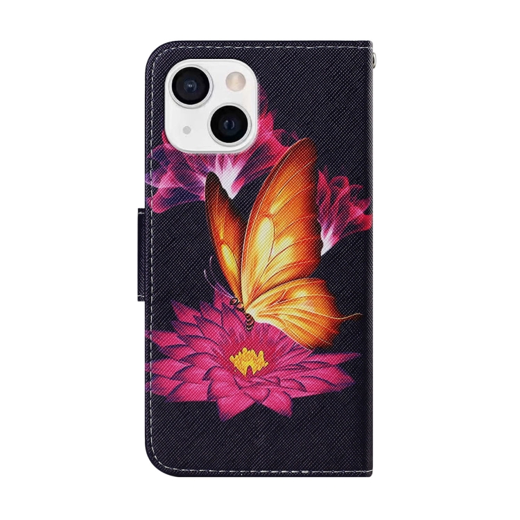 Funda de Cuero para iPhone 13 Mini con Patrón de Dibujo Mariposa Dorada Grande