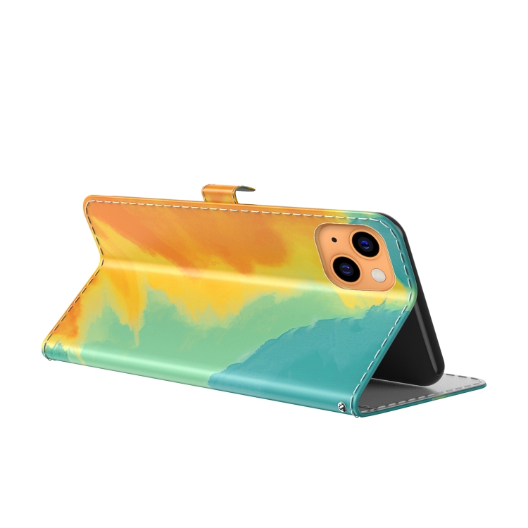 Funda de Cuero para iPhone 13 Mini con Tapa Horizontal, Soporte, Ranura para Tarjeta y Billetera (Hoja de Otoño)