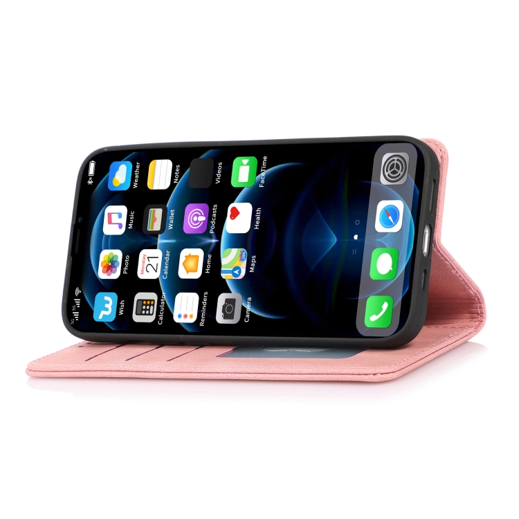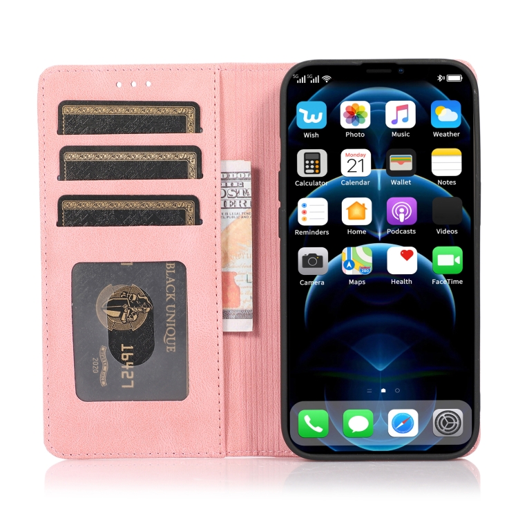 Funda para iPhone 13 Mini Cuero con Tapa Horizontal Textura Caballo Loco Soporte Ranuras Tarjetas Billetera (Oro Rosa)