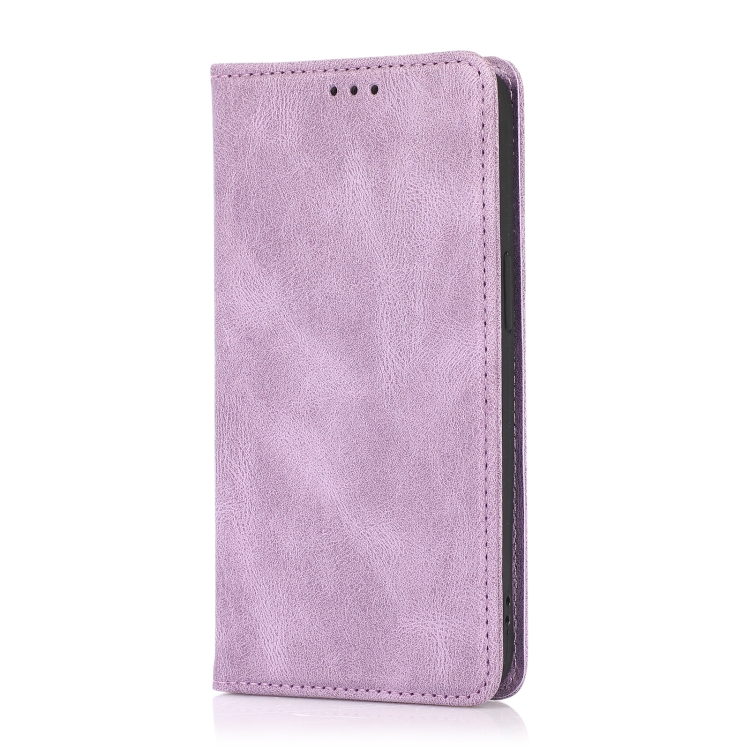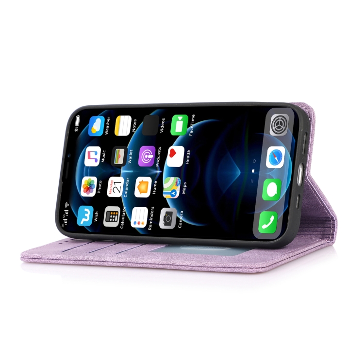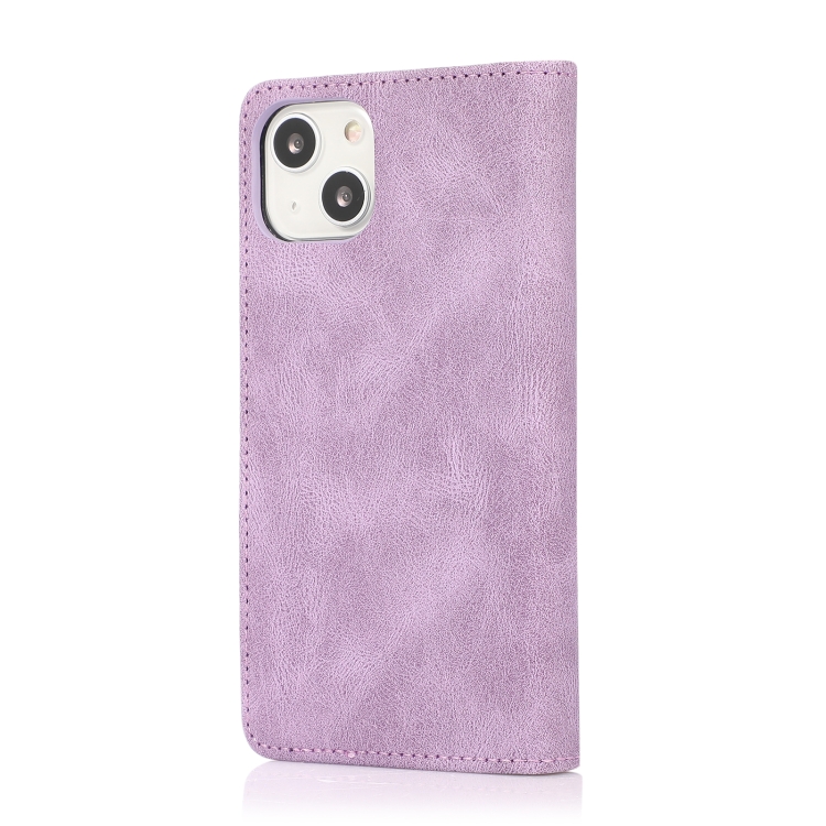 Funda de Cuero para iPhone 13 Mini con Tapa Horizontal Textura Caballo Loco Magnético Soporte Ranuras Tarjetas Billetera (Púrpura)