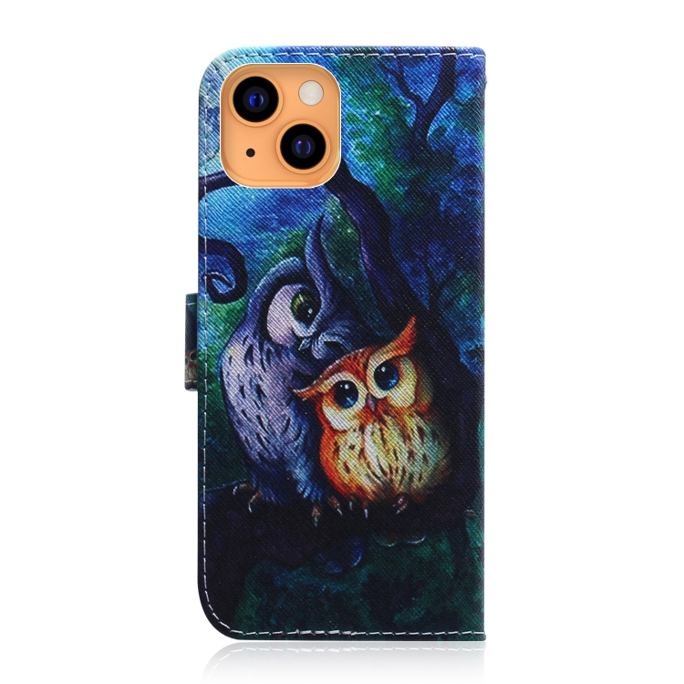 Funda de Cuero para iPhone 13 Mini con Tapa Horizontal, Soporte y Ranuras para Tarjetas (Búho de Pintura al Óleo)
