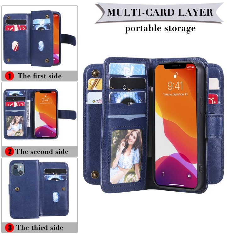 Funda de Cuero iPhone 13 Mini Tapa Horizontal Hebilla Magnética Multifuncional (Negro)