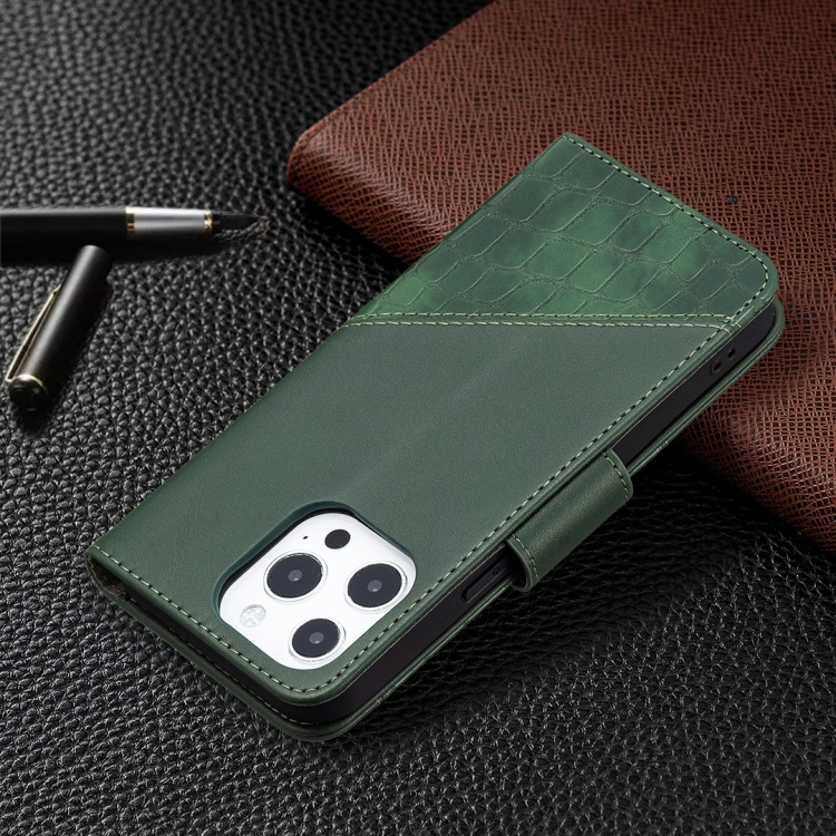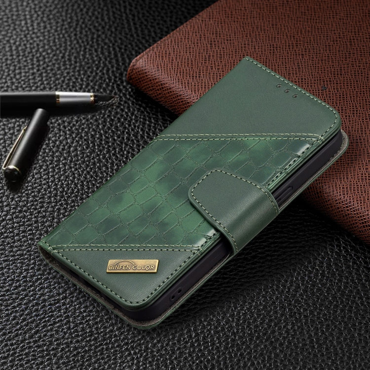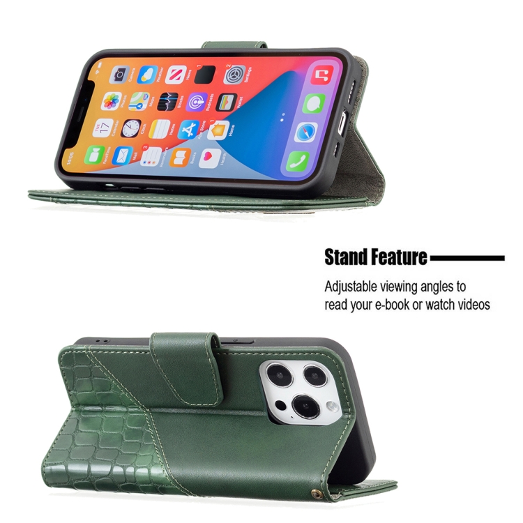 Funda para iPhone 13 Mini Cuero de PU con Tapa Horizontal Textura Cocodrilo Billetera Soporte Ranuras Tarjetas (Verde)