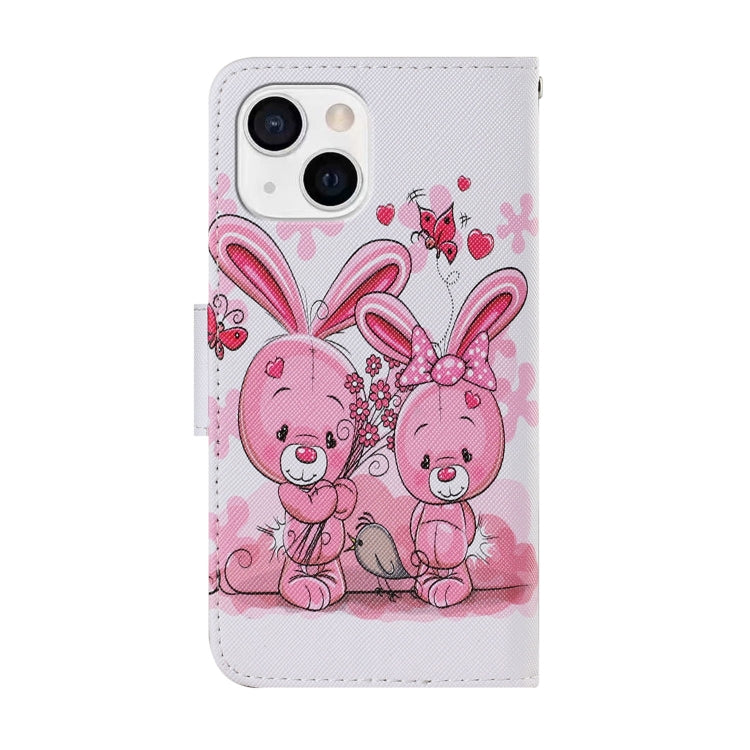 Funda de Cuero para Teléfono iPhone 13 Mini con Patrón de Dibujo a Color (Lindo Conejo)