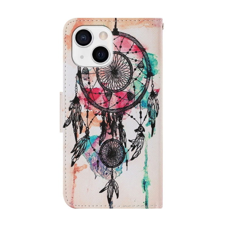 Funda de Teléfono de Cuero para iPhone 13 Mini con Patrón de Dibujo a Color (Campanas de Viento)