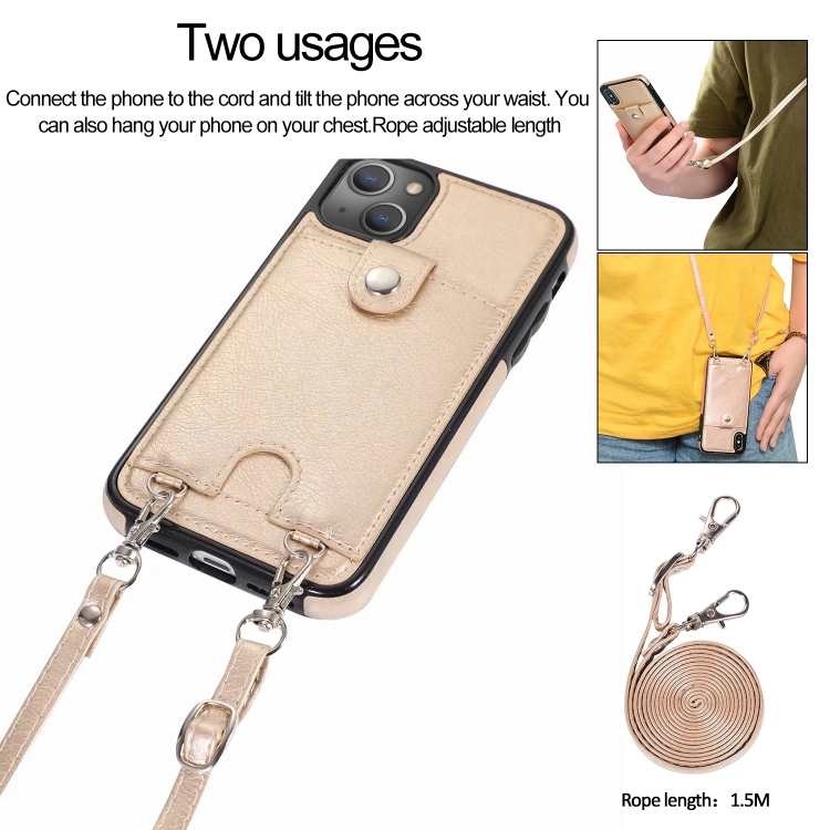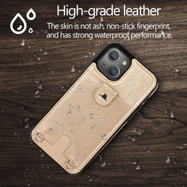 Funda Protectora para iPhone 13 Mini Cuero Pu a Prueba de Golpes con Ranura para Tarjeta y Cordón (Dorado)