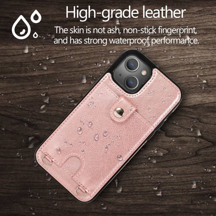 Funda Protectora para iPhone 13 Mini Cuero PU a Prueba de Golpes con Ranura para Tarjeta y Cordón (Oro Rosa)