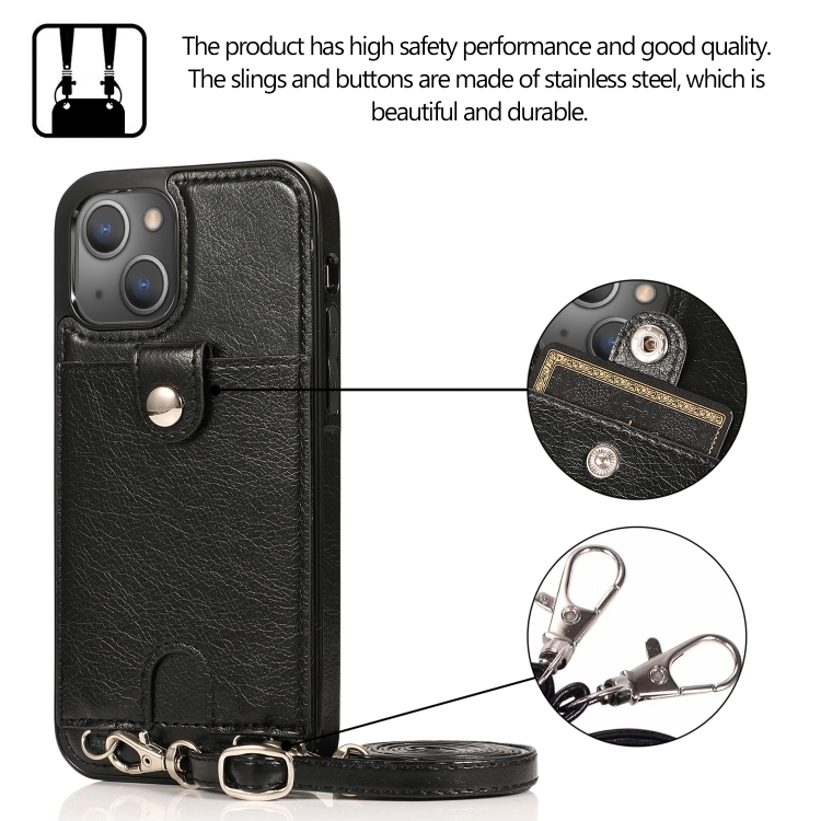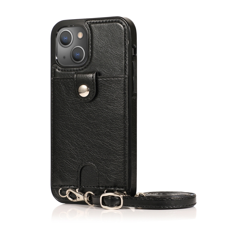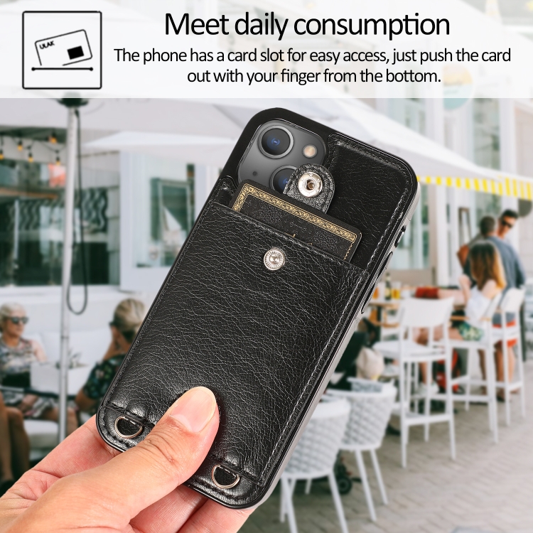 Funda Protectora iPhone 13 Mini Cuero PU + TPU Ranura para Tarjeta Cordón (Negro)