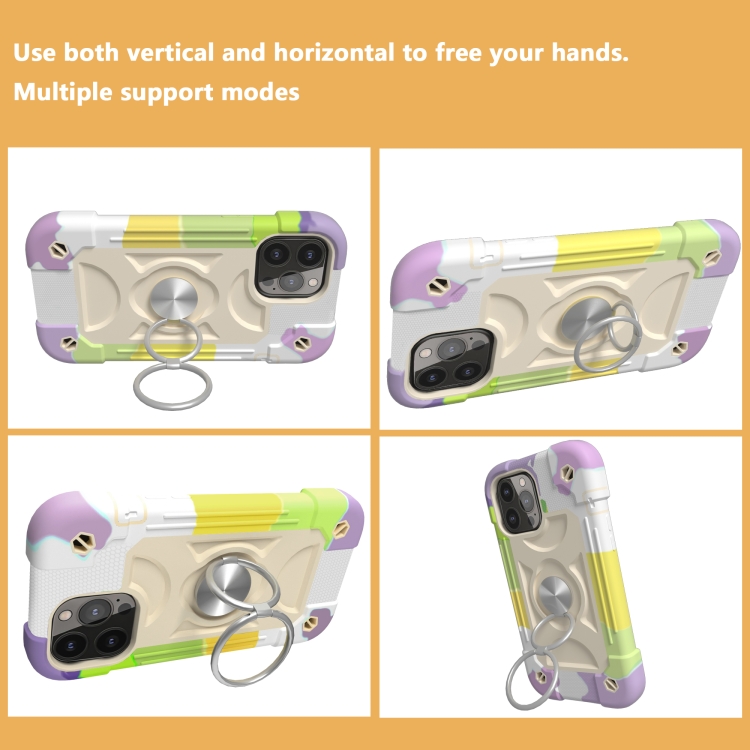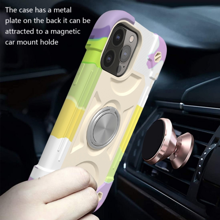 Funda Protectora para iPhone 13 Mini Silicona a Prueba de Golpes + PC con Soporte Doble Anillo (Beige)