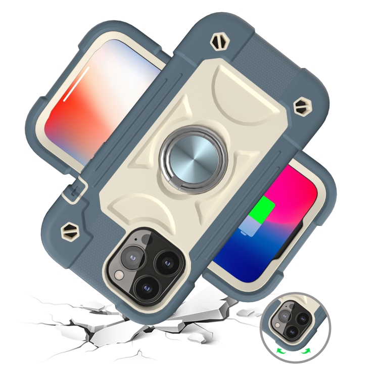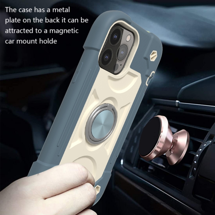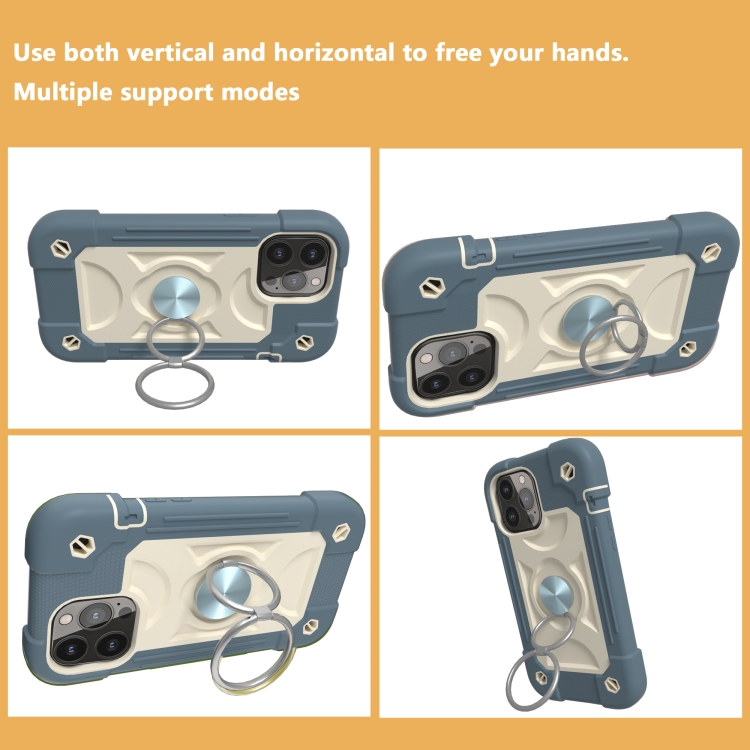 Funda Protectora de Silicona y PC para iPhone 13 Mini con Soporte de Doble Anillo (Azul)