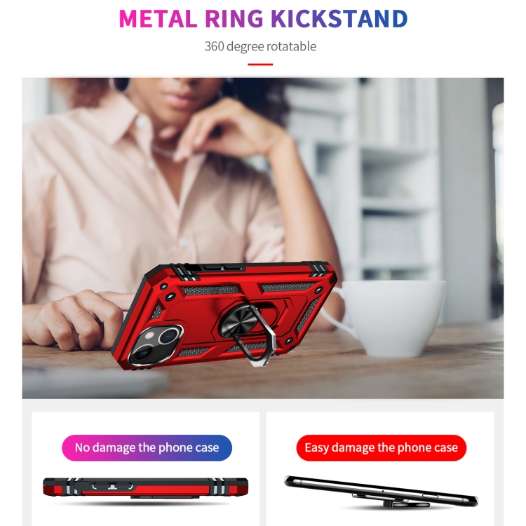 Funda Protectora para iPhone 13 Mini TPU + PC a Prueba de Golpes con Soporte Giratorio 360 (Rojo)