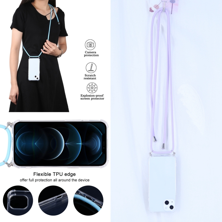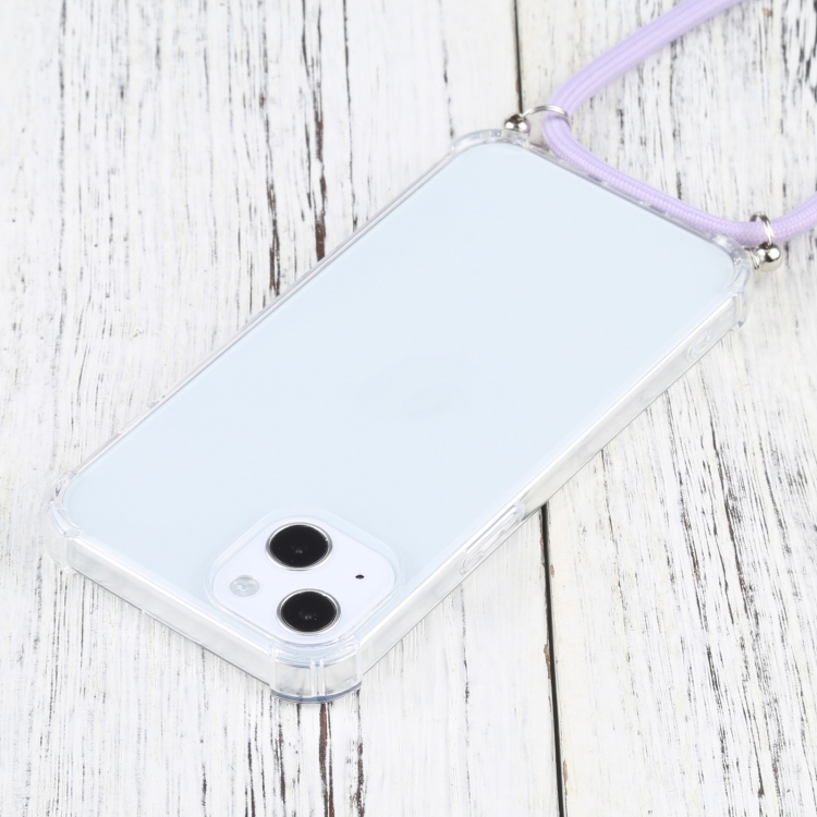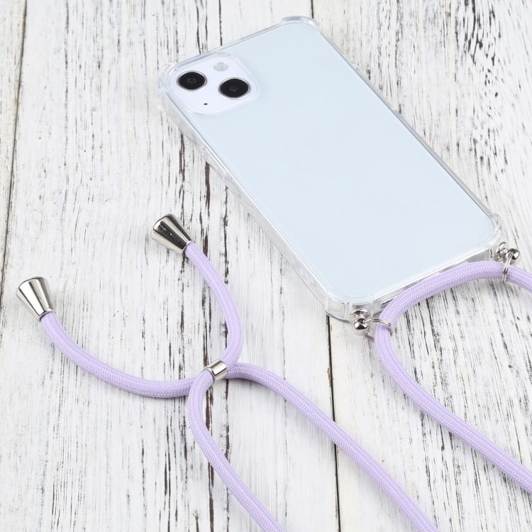 Funda Protectora TPU para iPhone 13 Mini a Prueba de Golpes Cuatro Esquinas con Cordón (Púrpura Claro)
