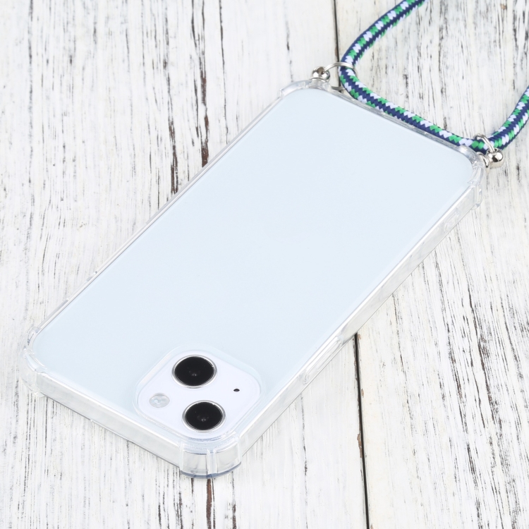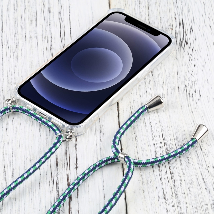 Funda Protectora para iPhone 13 Mini TPU Transparente a Prueba de Golpes con Cordón (Verde Blanco)