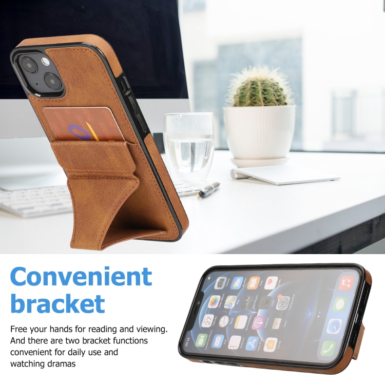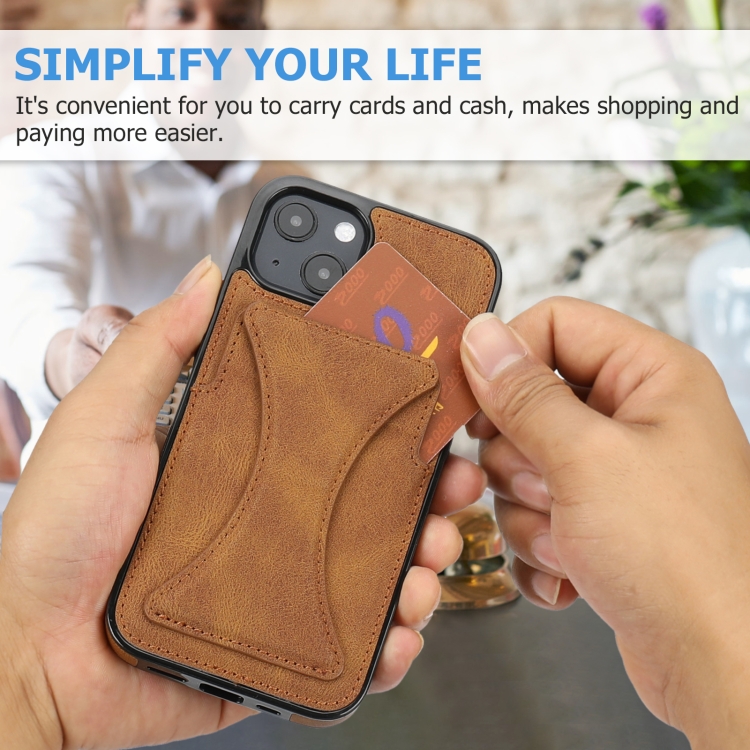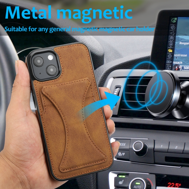 Funda Protectora para iPhone 13 Mini Ultrafina a Prueba de Golpes con Soporte y Función Magnética de Metal (Marrón)