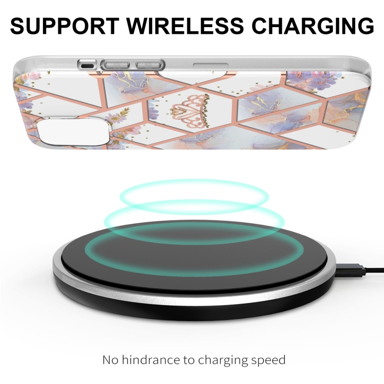 Funda para iPhone 13 Mini TPU Galvanoplastia Empalme Mármol Patrón de Flores a Prueba de Golpes (Corona)